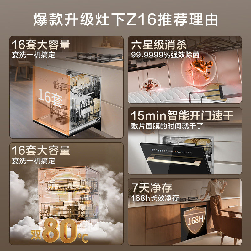 淘宝海尔洗碗机Z16灶下16套家用嵌入式全自动智能开门速干替换消毒柜