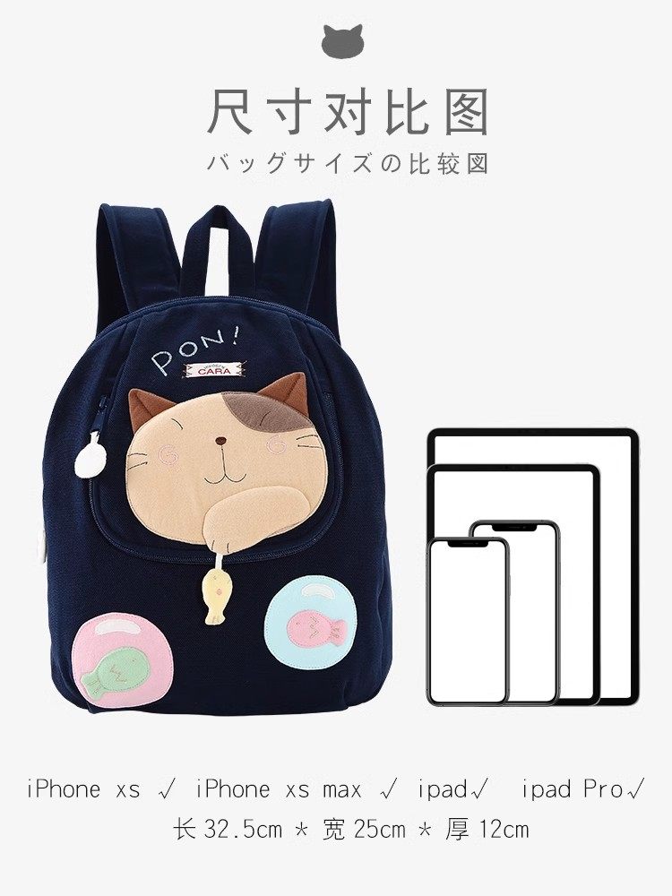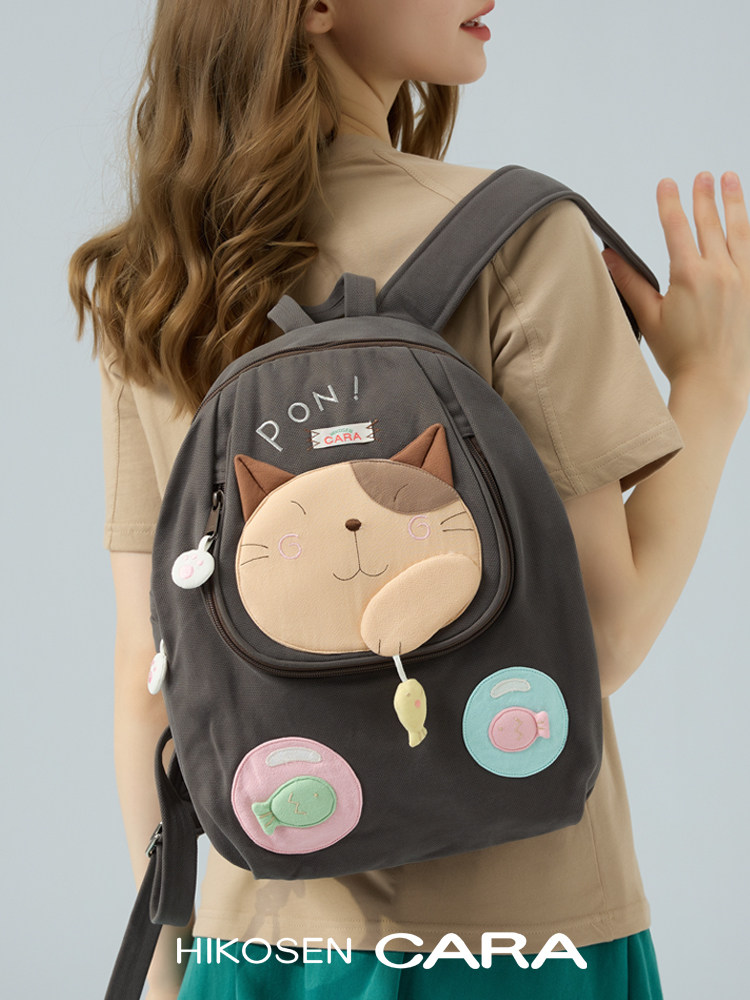 天猫HIKOSEN CARA日本卡拉猫咪可爱双肩包女韩版帆布学生书包妈咪背包