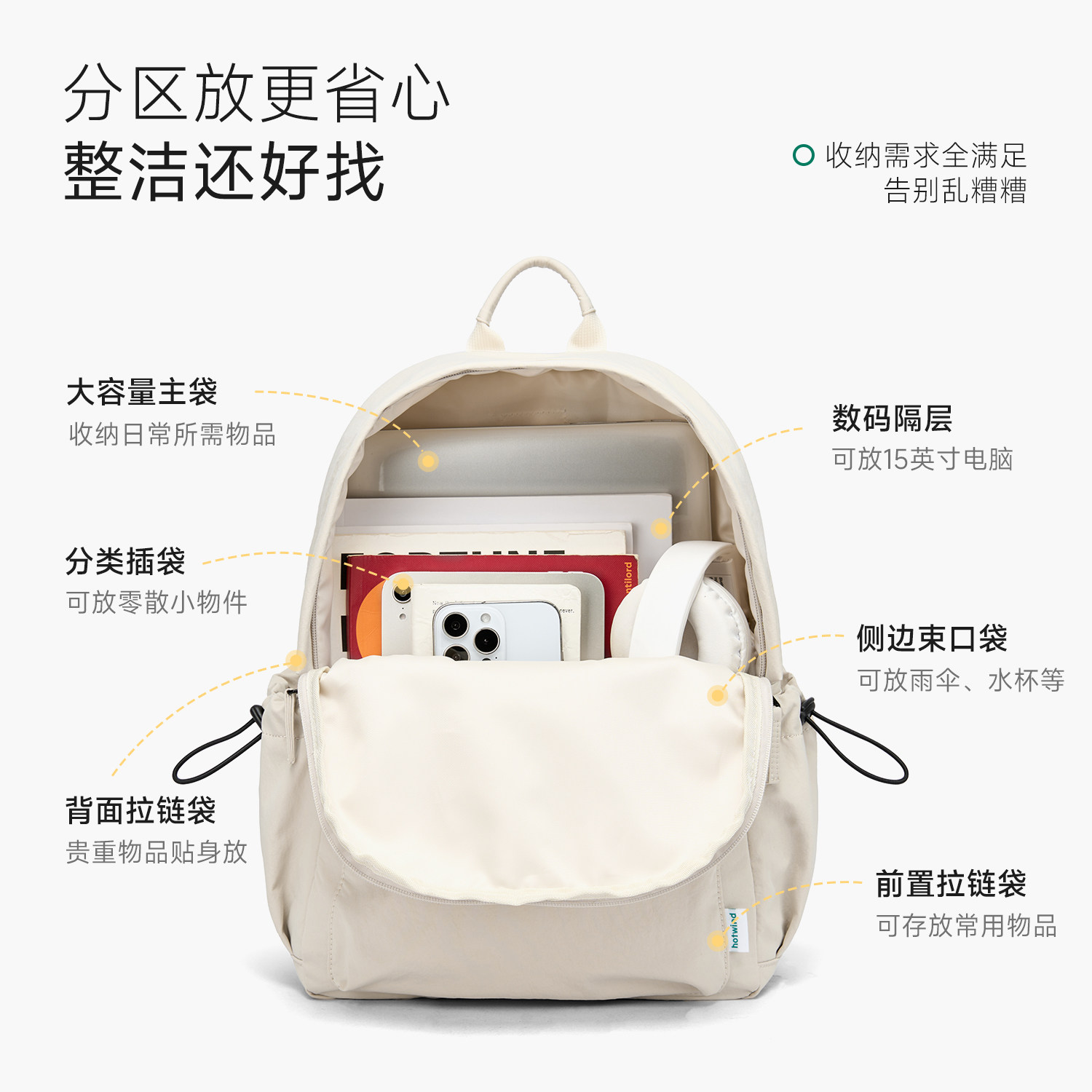 这款热风双肩包专为女性设计,集户外、通勤、休闲与学习于一体,大容量主仓可容纳课本、笔记本电脑(兼容15.6英寸)、衣物及日常用品,分层收纳井然有序。采用轻量化材质,背负舒适,肩带加宽减压,长时间背负也不易疲劳。外观简约时尚,配色清新百搭,适合初中生、高中生日常上学使用,也满足上班族通勤及短途旅行需求。防水耐磨面料有效应对多变天气,细节处如反光条设计提升夜间安全性。无论是校园、城市出行还是户外轻旅,这款背包都能轻松胜任,是实用与颜值兼具的理想选择。