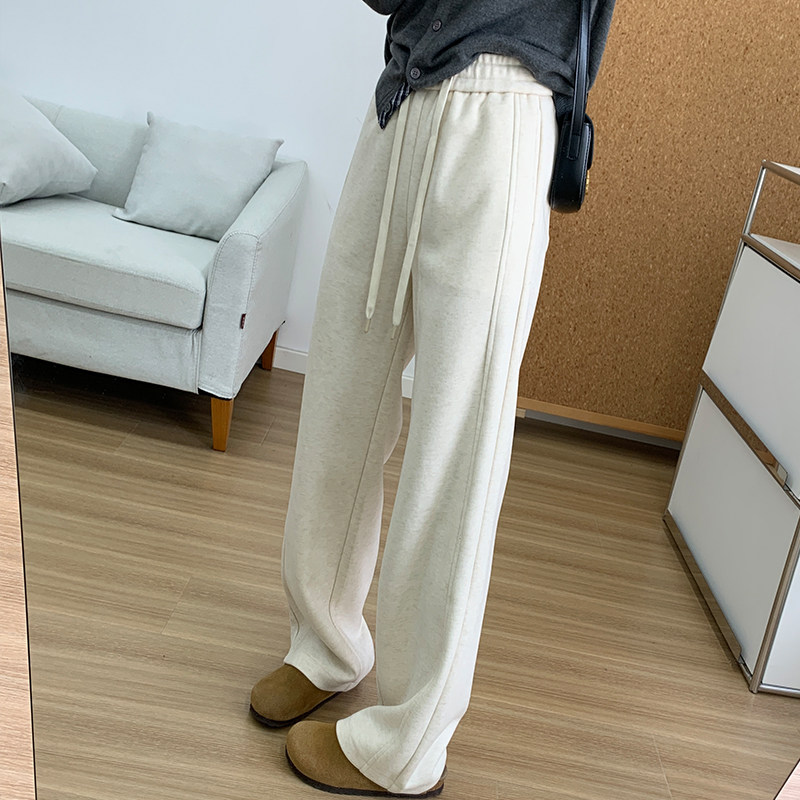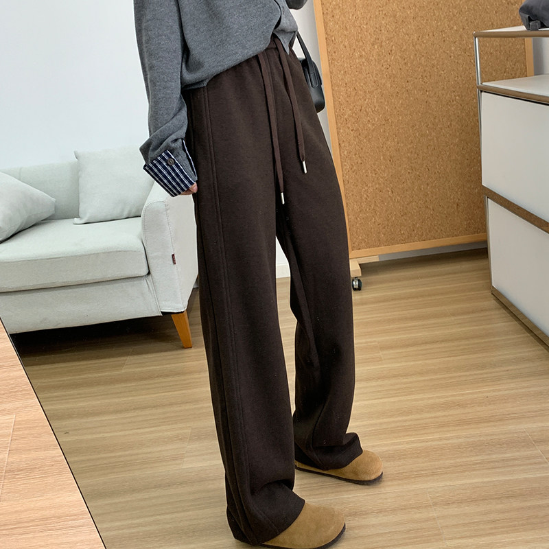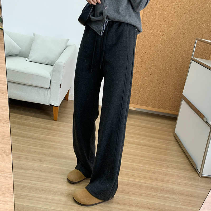 淘*WKZ08167 茉莉雅集慵懒松弛垂感含羊毛半牛筋腰直筒休闲裤秋冬女
