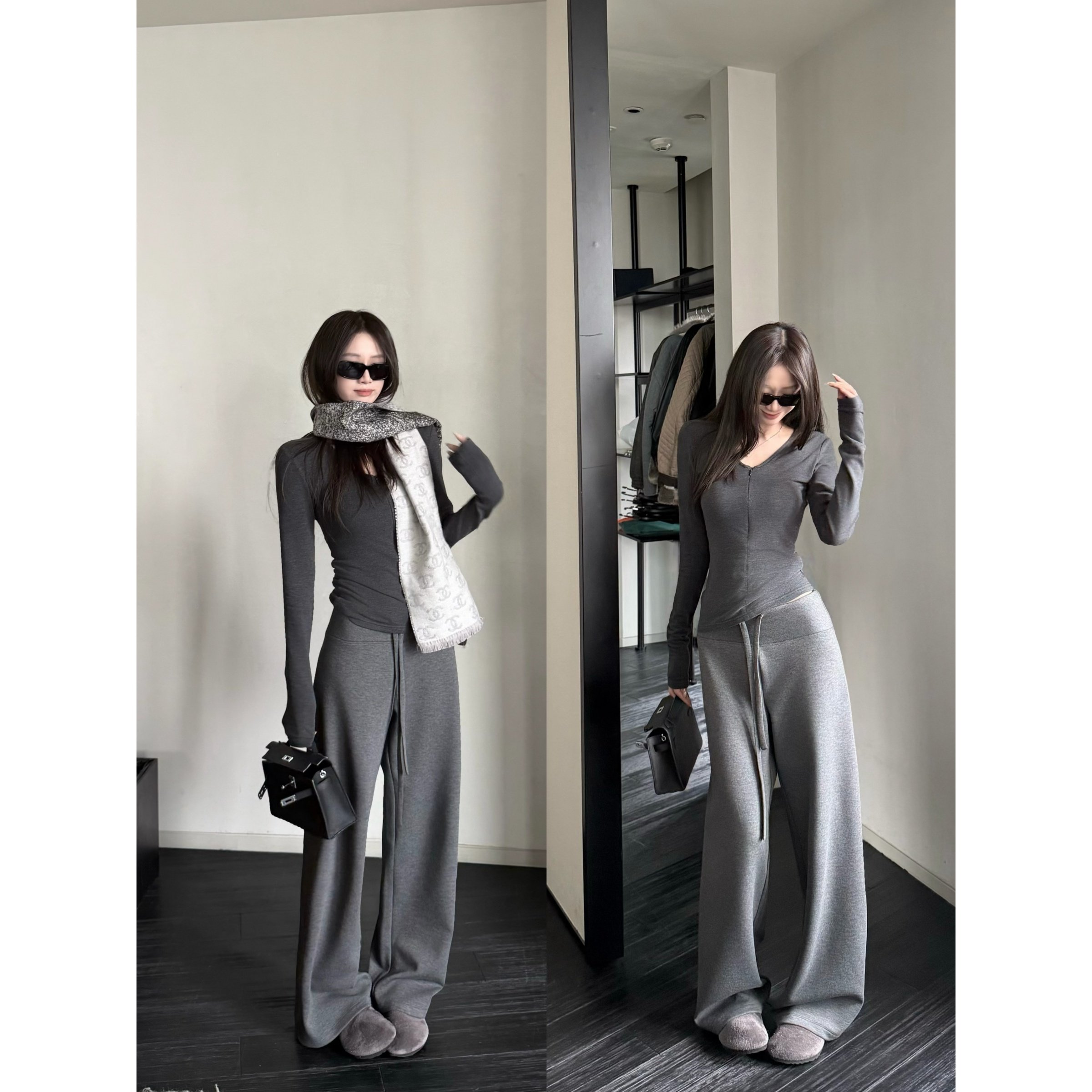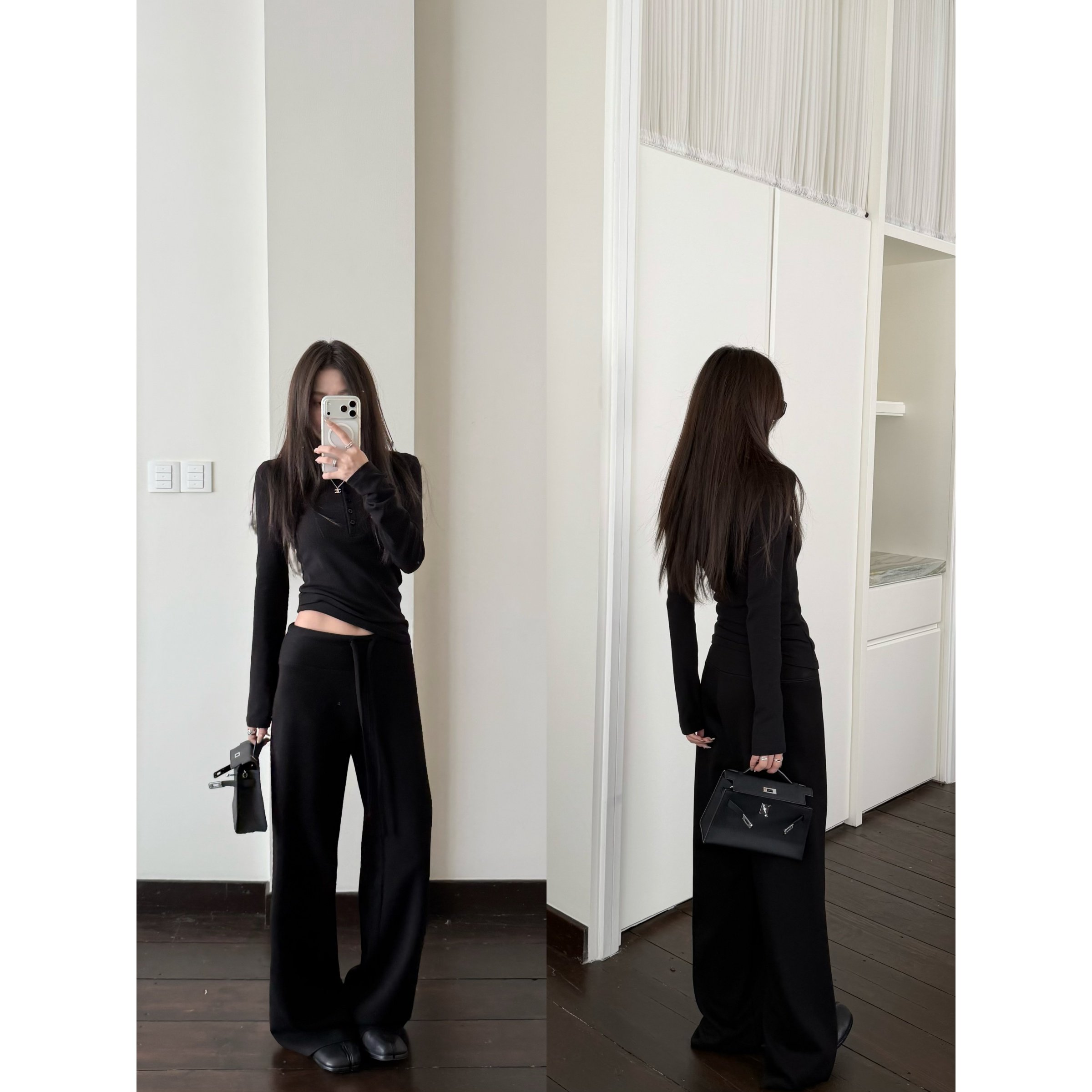 *WKZ08167 茉莉雅集慵懒松弛垂感含羊毛半牛筋腰直筒休闲裤秋冬女