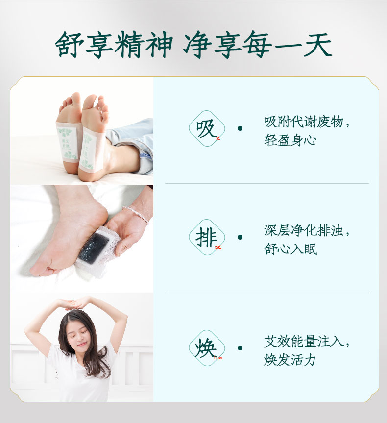 艾草足贴是一款专业艾叶艾灸的足底暖足产品。结合传统艾灸理念和现代科技,产品以高品质艾草为原料,通过精细工艺制成足底贴,旨在为用户提供舒适温暖的体验。老北京足贴暖宝宝官方旗舰店的正品保证,让你放心使用。本足贴有助于改善血液循环,舒缓疲劳,让你的双脚感受深沉的放松与温暖。是你在冬季保暖、保健的理想选择,让你享受健康舒适的生活。