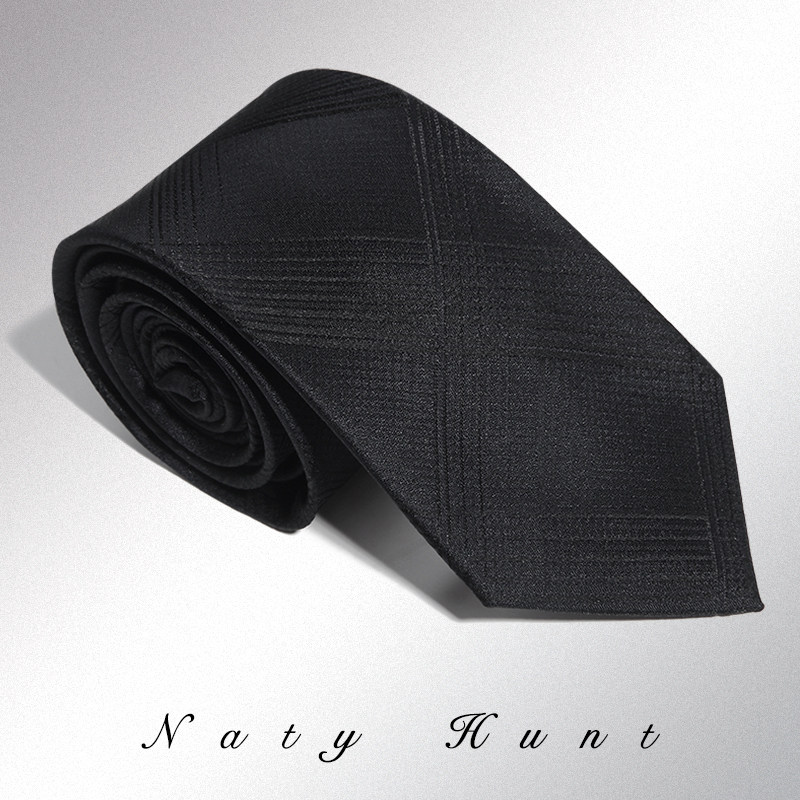 天猫Natyhunt暗蓝格纹桑蚕丝领带男商务正装高端手打免打礼盒装7c窄版