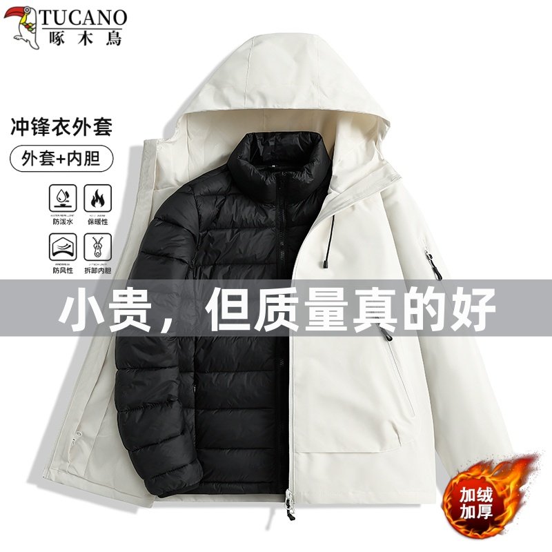 淘宝啄木鸟羽绒棉服男女同款2025新款可拆卸加厚保暖户外防风防水外套