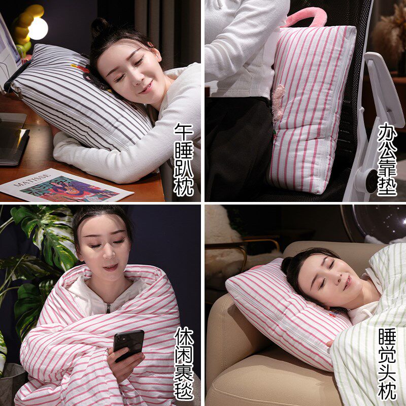 淘牛奶绒抱枕被子两用车载多功能折叠靠垫办公室午睡枕头毯子二合一