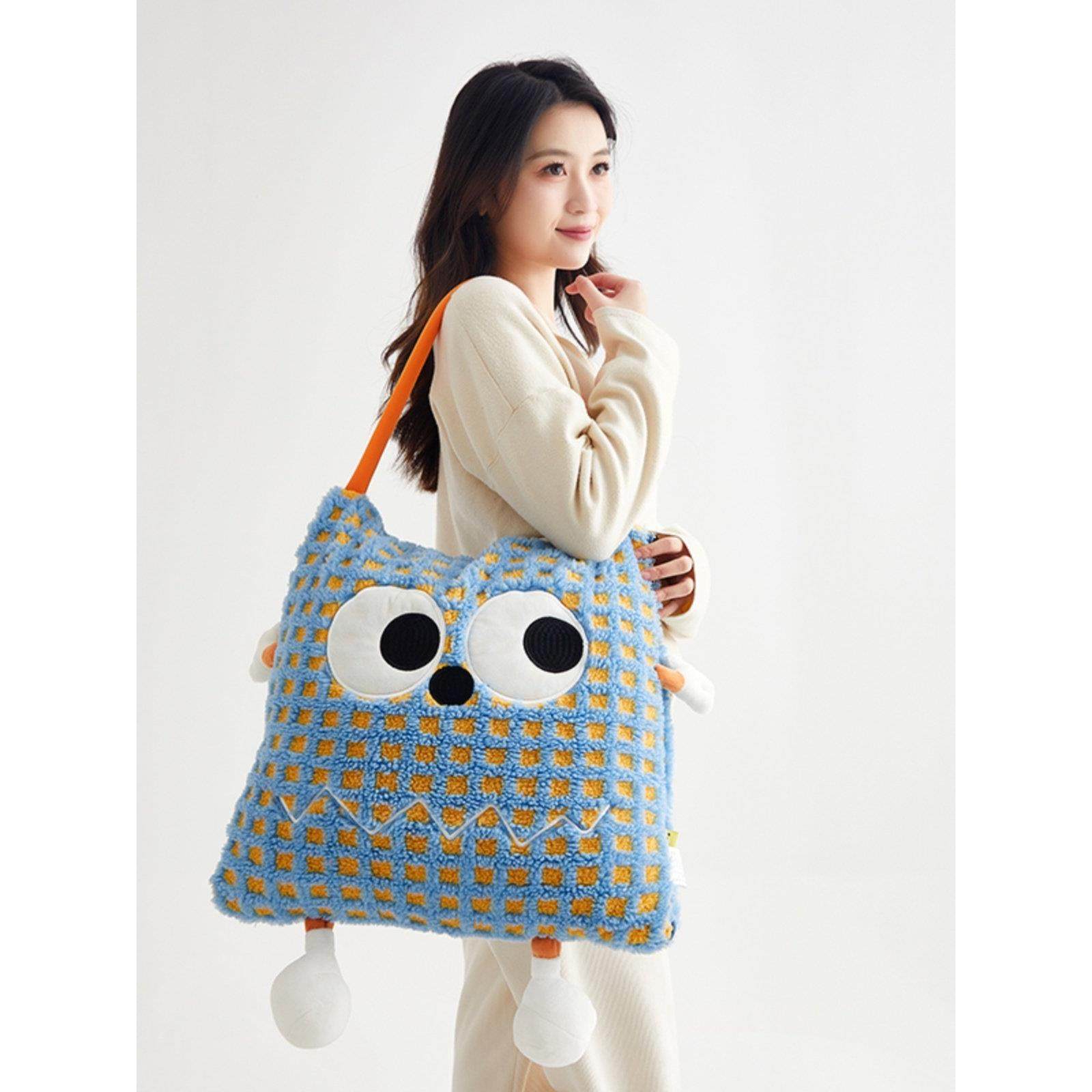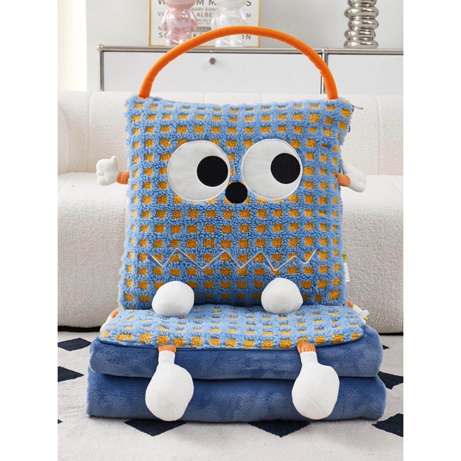 小怪兽彩色多巴胺卡通条纹抱枕被子二合一两用高级车载车用午睡毯