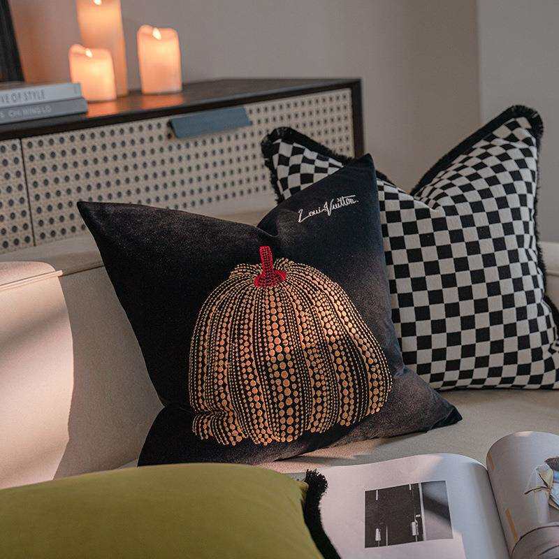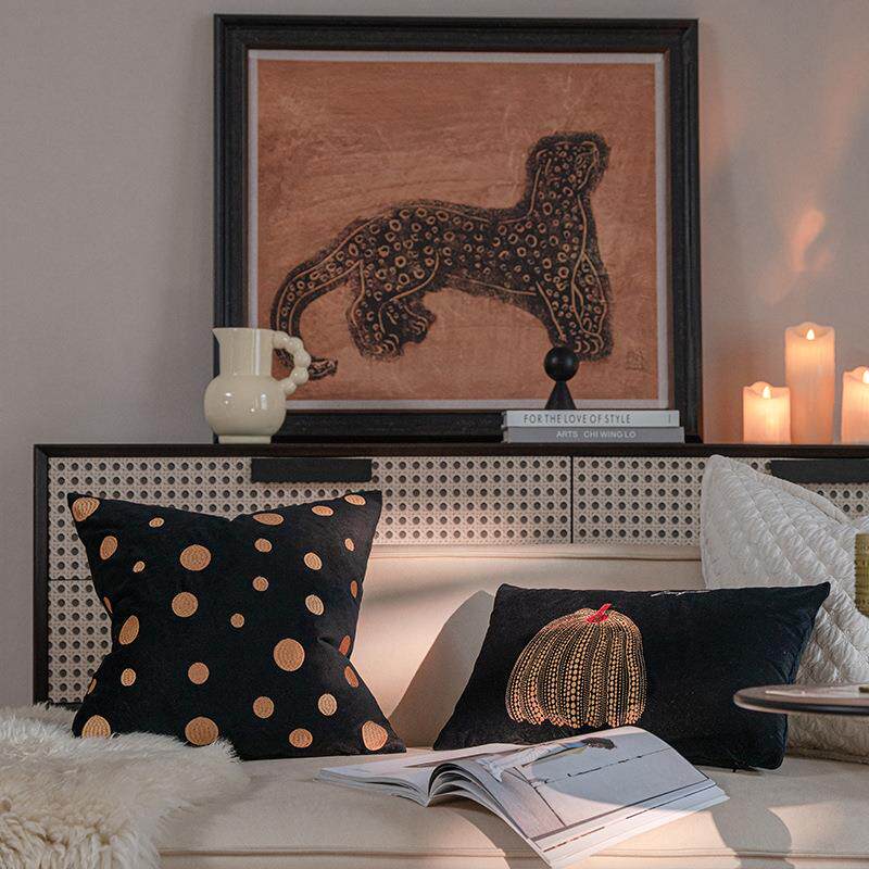 淘宝新款波点南瓜绒布鸱鸺客厅沙发抱枕法式复古靠垫中古风床头靠背垫