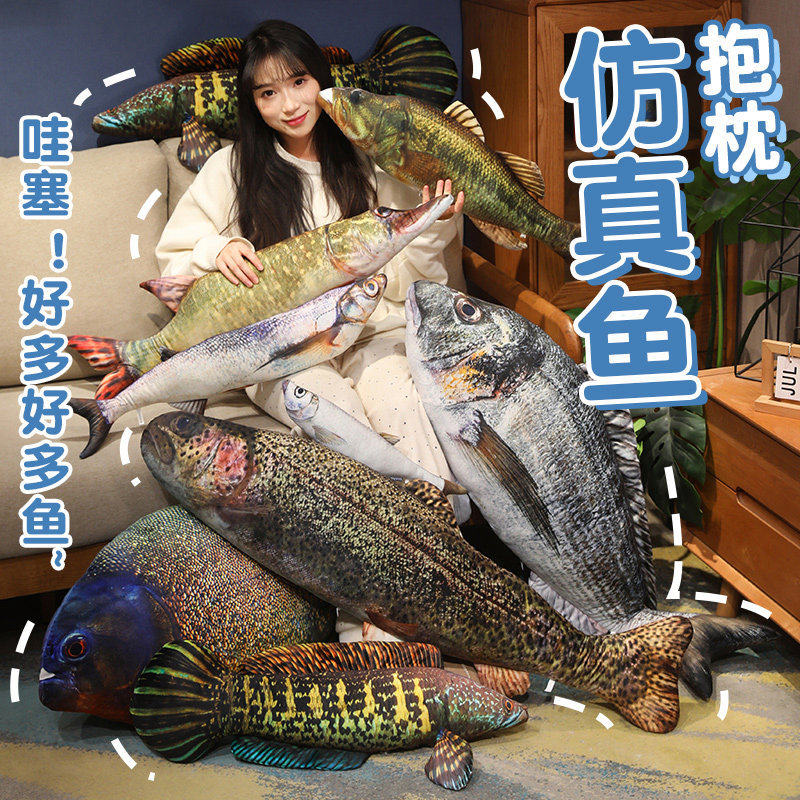 淘宝跨境仿真鱼公仔鲈鱼翘嘴鱼毛绒玩具睡觉抱枕海洋馆玩偶鱼类布娃娃