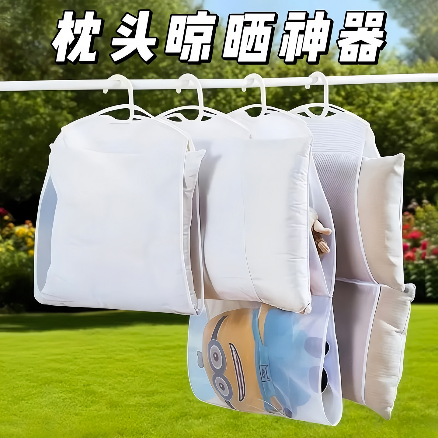 淘宝晒枕头神器新款枕头晾晒网晒枕芯抱枕鞋子家用阳台挂式架子多功能