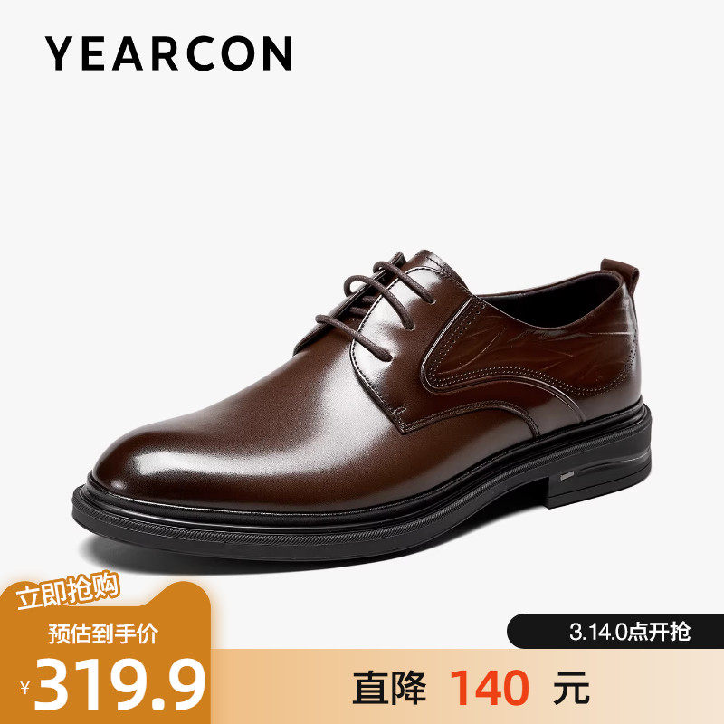 天猫意尔康皮鞋男春季新款真皮通勤商务正装46大码新郎结婚增高德比鞋