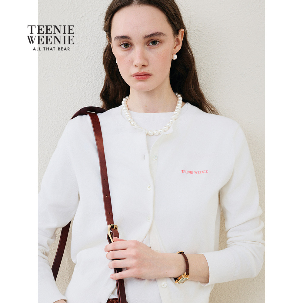 天猫【云朵平织】TeenieWeenie小熊女装26春简约字母刺绣圆领针织开衫