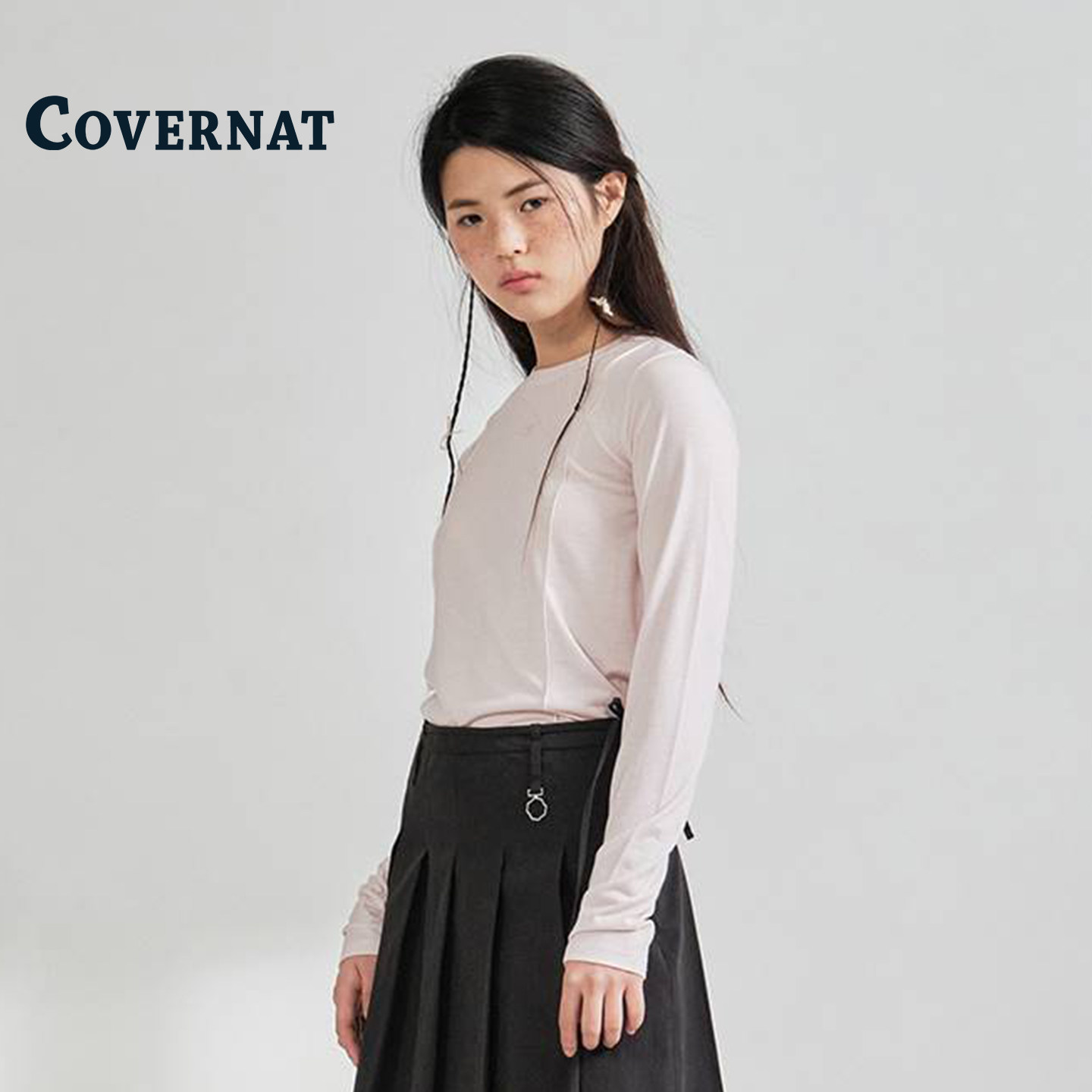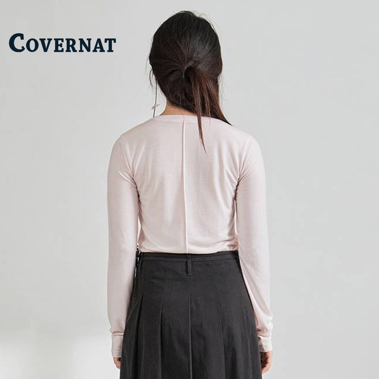 天猫COVERNAT韩国针织衫女春秋极简风圆领长袖打底衫基础款针织衫上衣