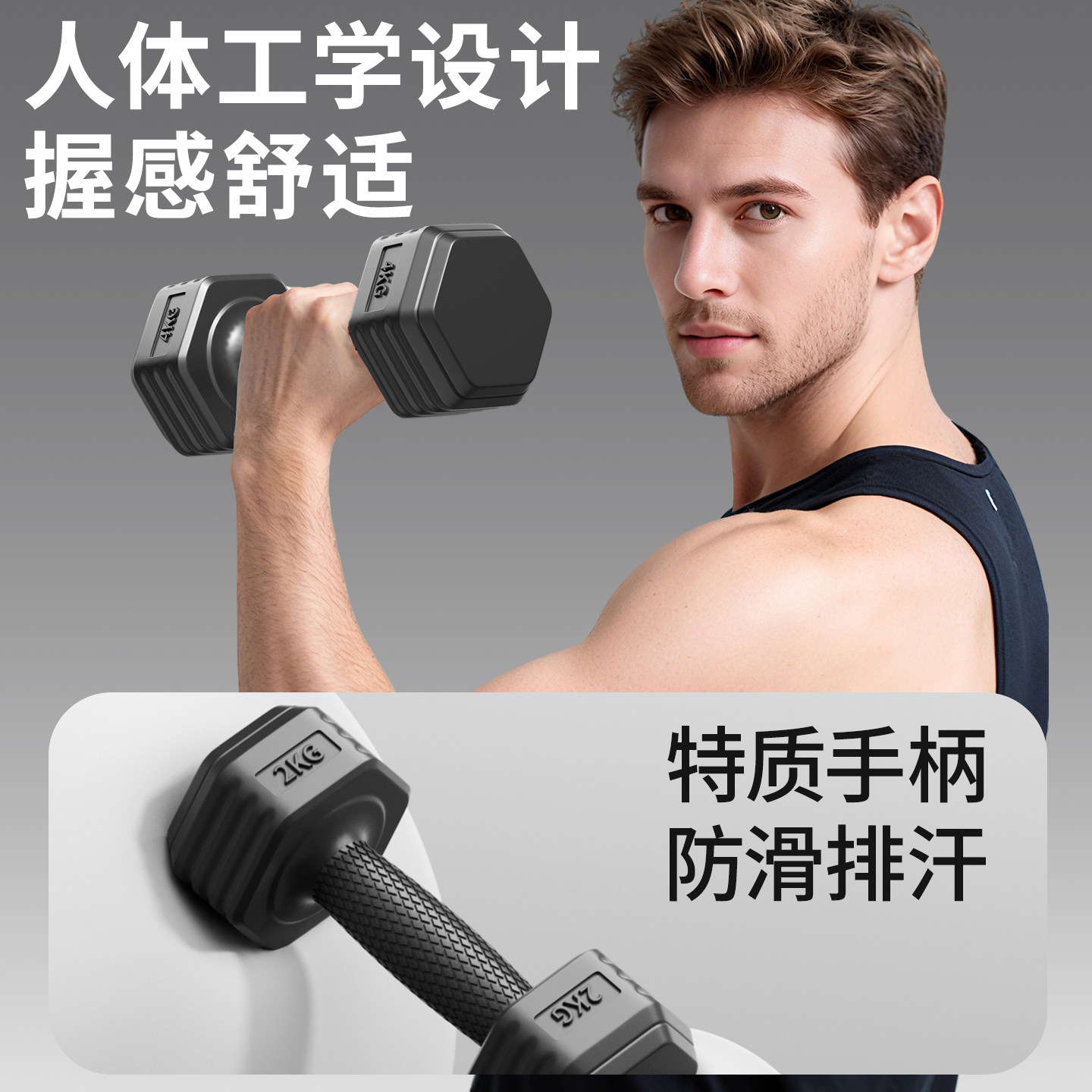 六角哑铃男士健身家用学生青少年杠铃六角女士小哑铃5/10kg一对