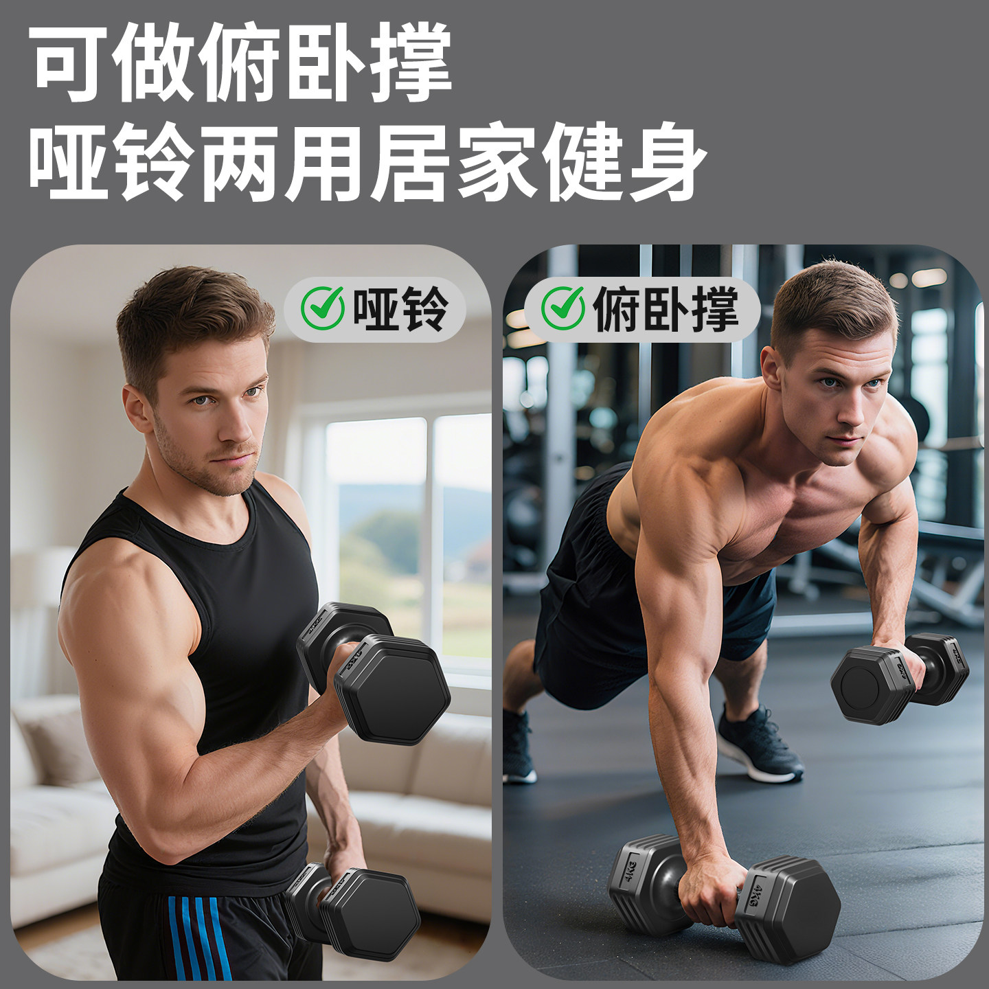 淘六角哑铃男士健身家用学生青少年杠铃六角女士小哑铃5/10kg一对