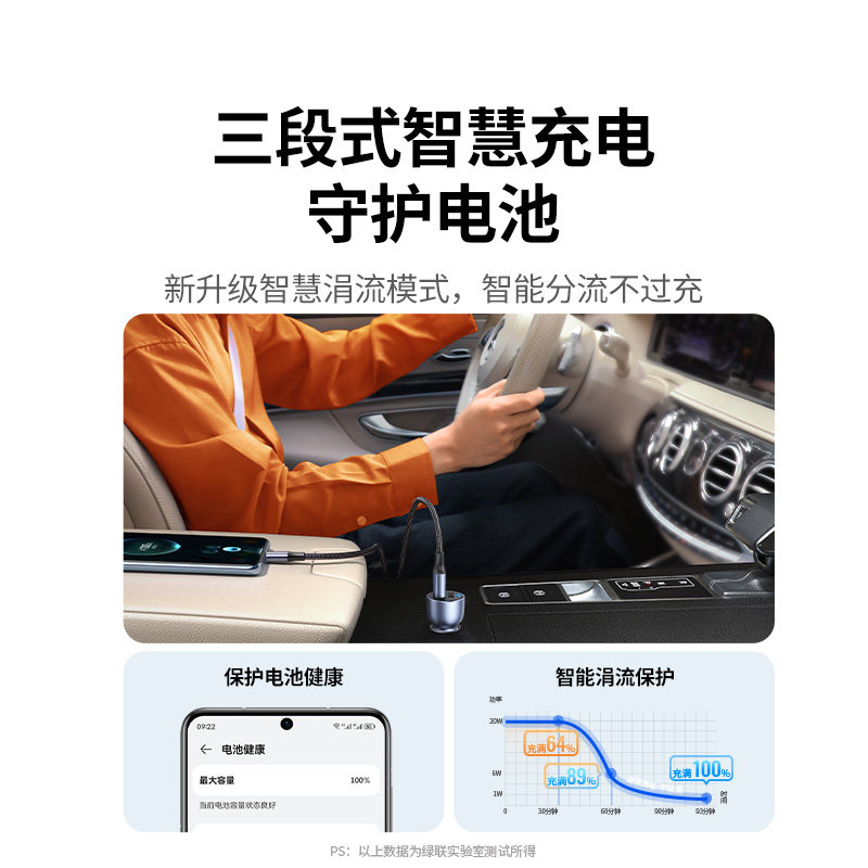 绿联车载充电器是一款专为华为超级快充优化的点烟器转换插头,支持华为SCP/FCP快充协议,兼容多种华为机型,实现高效安全充电。采用双USB接口设计,可同时为两部设备充电,输出稳定,充电速度快。内置智能芯片,具备过压、过流、过热等多重保护,确保行车途中用电安全。外壳采用阻燃材质,耐高温抗冲击,适配12V-24V汽车电源,广泛适用于轿车、SUV等车型。体积小巧,插拔便捷,不占用车内空间。无论是日常通勤还是长途旅行,绿联车载充电器都能为您的华为设备提供持久可靠的电力支持,是车主出行的理想充电伴侣。
