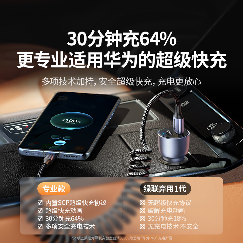 天猫绿联车载充电器适用华为超级快充点烟器转换插头usb转接口汽车充