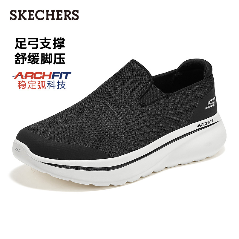 天猫斯凯奇夏季新款男宽楦一脚蹬健步鞋足弓支撑舒适休闲运动鞋