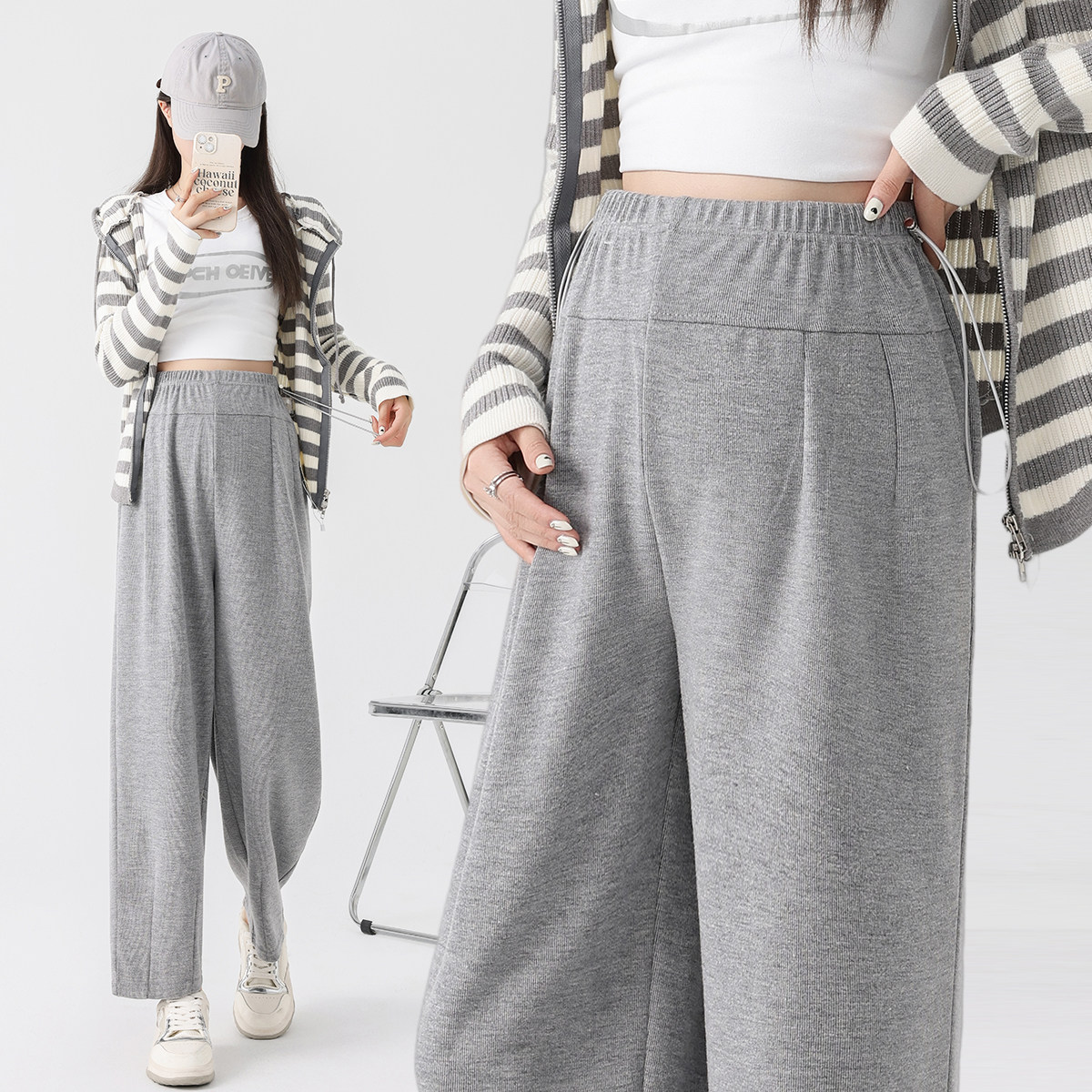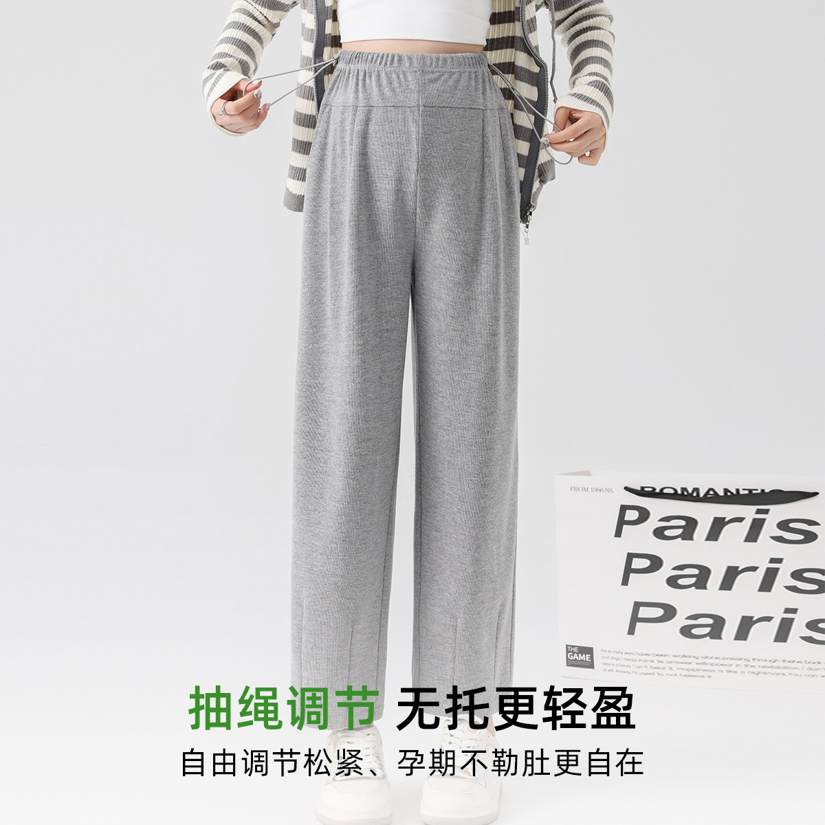 天十月名裳春秋孕妇裤孕妇交叉低腰丝滑直筒阔腿裤垂感宽松休闲长裤