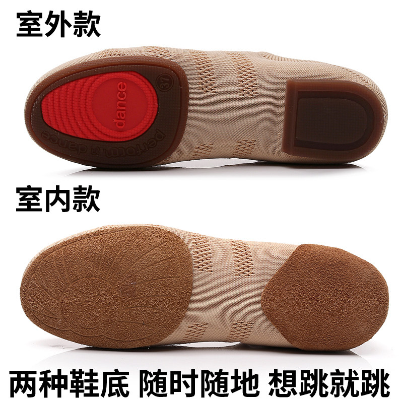淘室外舞蹈鞋女软底跳舞鞋成人教师鞋1分跟大底免系带芭蕾舞鞋民族