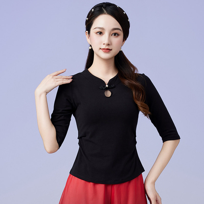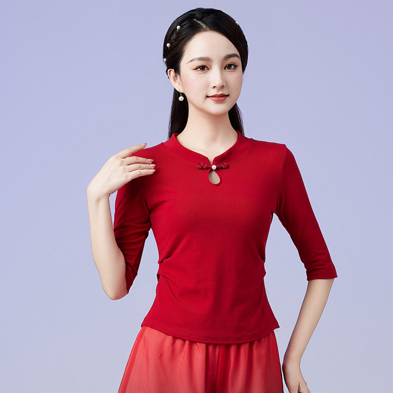 淘宝新款广场舞上衣复古立领跳舞服中国风舞蹈服女表演服装中袖练功服