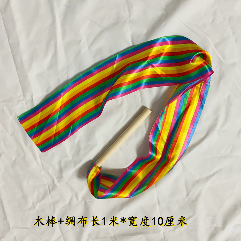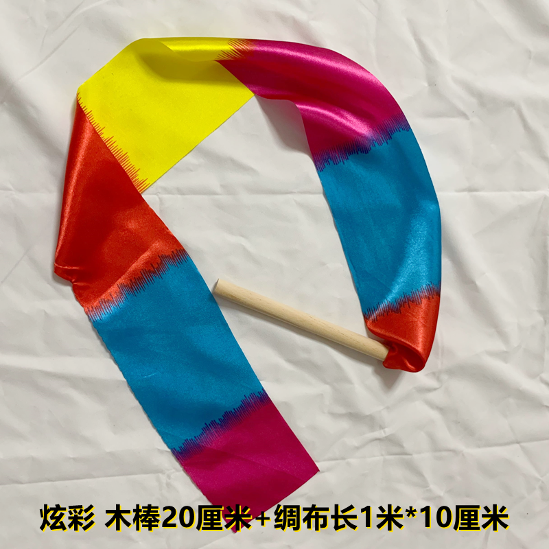 淘彩带舞彩带伸缩杆中老年健身广场舞七彩10厘米加宽手甩飘带体操带