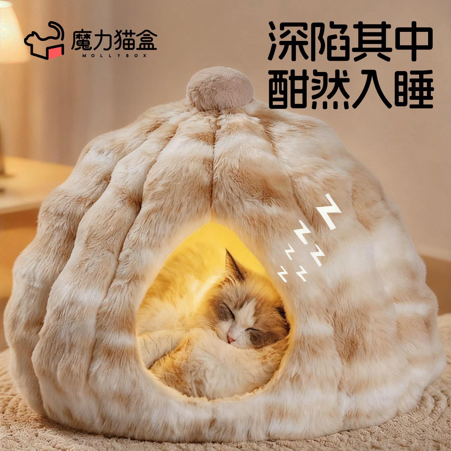 淘猫窝秋冬新款可拆洗封闭式猫屋安全感冬季保暖宠物睡窝睡袋猫狗房