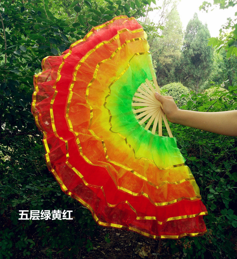 舞蹈扇子火焰扇加长扇跳舞扇三色渐变真丝扇广场舞长绸舞蹈扇长扇