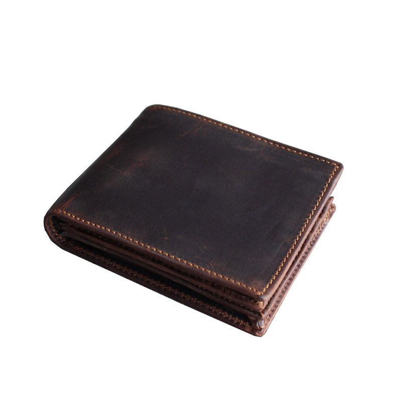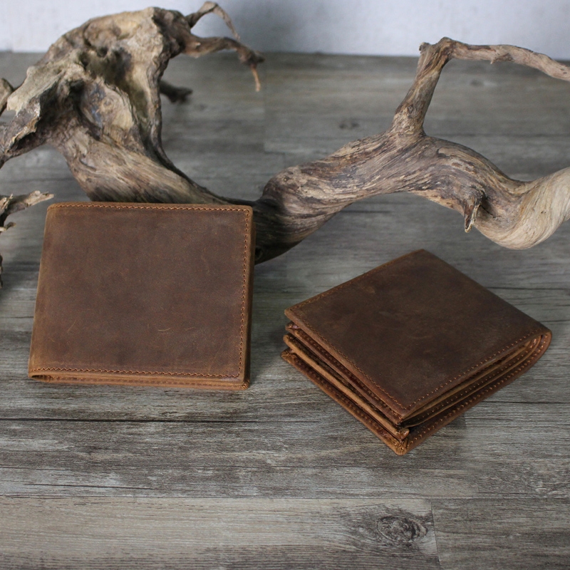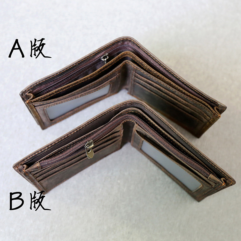 淘头层牛皮手工小钱包男女复古软真皮短款零钱卡包疯马皮学生无logo