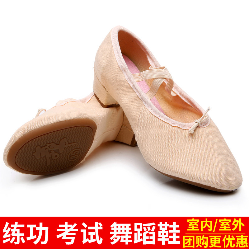舞蹈鞋女6到12岁跳舞鞋成人儿童软底猫爪形体练功中国舞芭蕾舞鞋