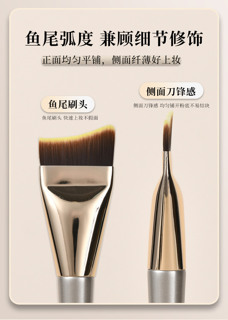 淘宝鱼尾粉底刷扁头弧形不吃粉月牙面膜刷轻薄服帖无刷痕化妆刷