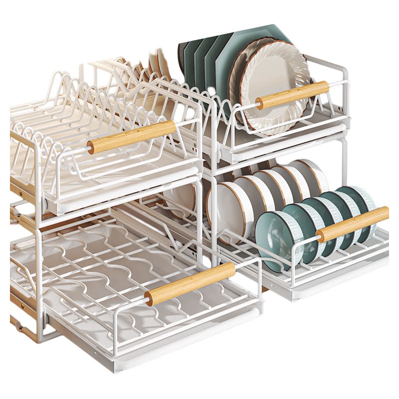 天猫不锈钢碗碟收纳架厨房橱柜内置物架抽屉式拉篮抽拉碗柜盘沥水碗架