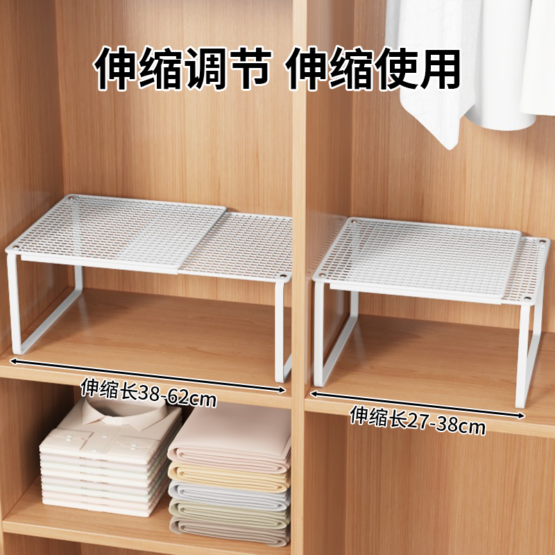 这款可伸缩衣柜收纳分层神器,专为提升柜内空间利用率而设计。采用优质环保材质,承重力强,稳固耐用。其伸缩结构可自由调节长度,适配不同尺寸的衣柜、橱柜或鞋柜,灵活分层,轻松实现衣物、鞋子、包包等物品的分类收纳。抽拉式设计取物方便,避免翻找混乱,让狭小空间也能井然有序。隔板高度可调,满足叠放或挂置需求,有效解决衣柜上层闲置、下层拥挤的问题。安装简便,无需工具,即装即用。无论是卧室衣柜、玄关鞋柜还是储物柜,都能让收纳更高效、空间更整洁,是现代家居的理想收纳助手。