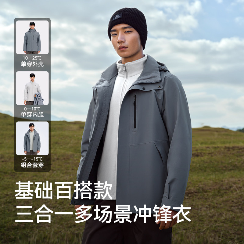 天猫【山野】伯希和户外三合一冲锋衣男冬新款抓绒防风徒步登山服外套