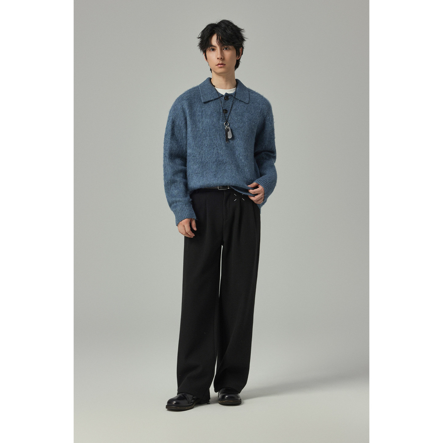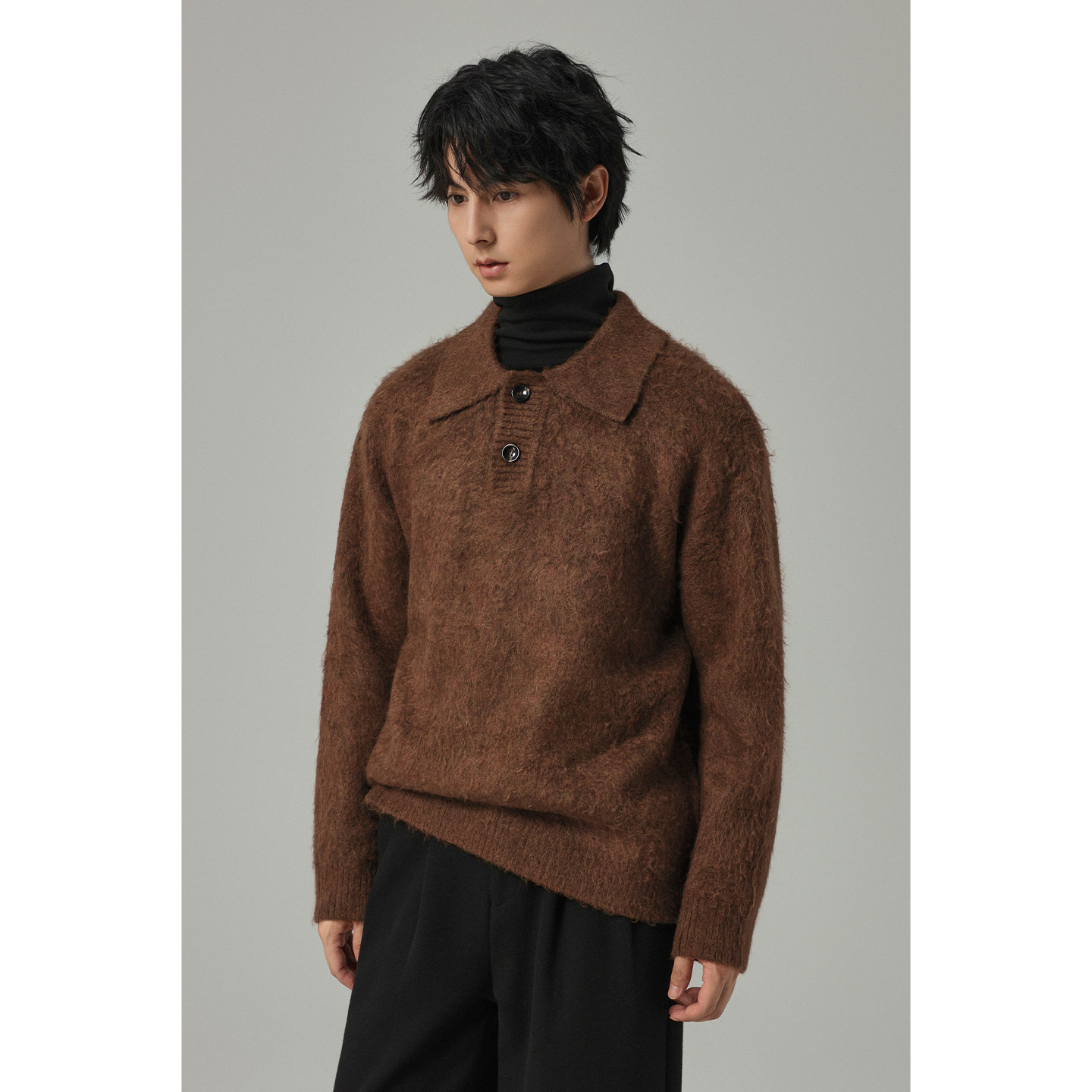 2025秋冬新款W2X翻领仿牛绒针织衫,以高级轻奢质感重塑男士冬日穿搭。精选细腻仿牛绒面料,柔软亲肤、保暖透气,兼具垂坠感与挺括度。经典翻领设计利落有型,轻松打造都市雅痞风格。简约廓形融合精致走线,细节处彰显品质匠心。无论是单穿还是作为内搭外套,都能轻松驾驭通勤、休闲等多种场合。多色可选,百搭实穿,尽显低调奢华的摩登气质。这件毛衣外套不仅温暖升级,更将高级感穿在身上,是追求质感与时尚兼具的男士秋冬必备单品。