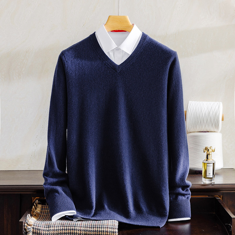 这款男士100%纯羊绒V领针织衫,精选优质山羊绒织造,质地轻盈柔软,触感细腻亲肤,保暖性极佳却不显厚重。采用经典鸡心领(V领)设计,简约大方,轻松搭配衬衫、西装或外套,适合商务、休闲等多种场合。薄款版型修身不紧绷,作为秋冬打底穿着舒适自在,兼具温度与风度。精细针织工艺确保衣物耐穿不易变形,彰显低调奢华品质。无论是日常通勤还是出差旅行,都是男士衣橱中不可或缺的优雅单品,尽显成熟男士的儒雅气质与品味格调。