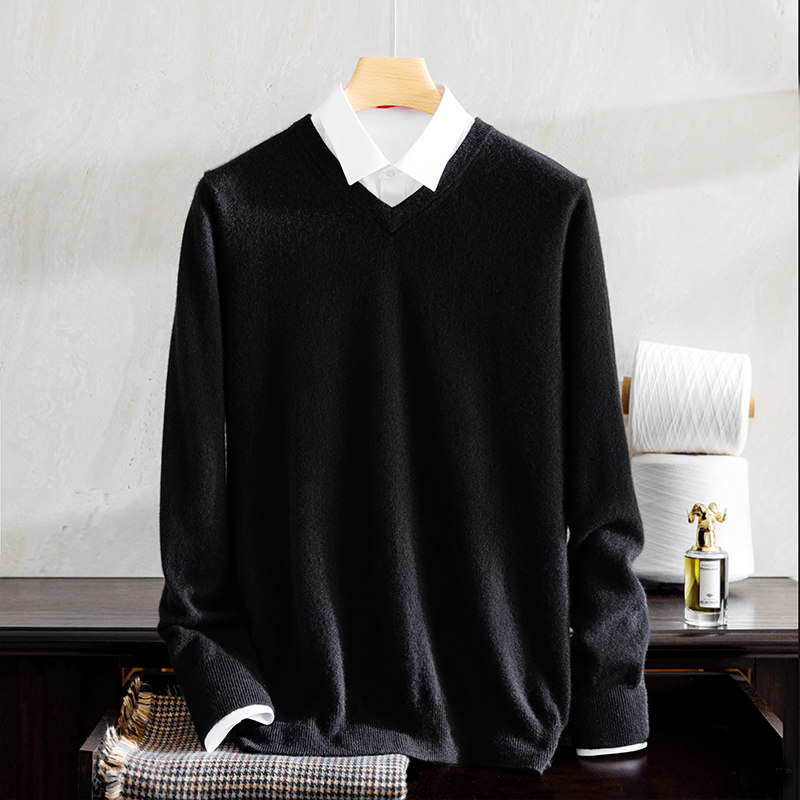 天群工2025秋冬新款套头V领纯羊绒衫男士纯色内搭保暖长袖毛衣