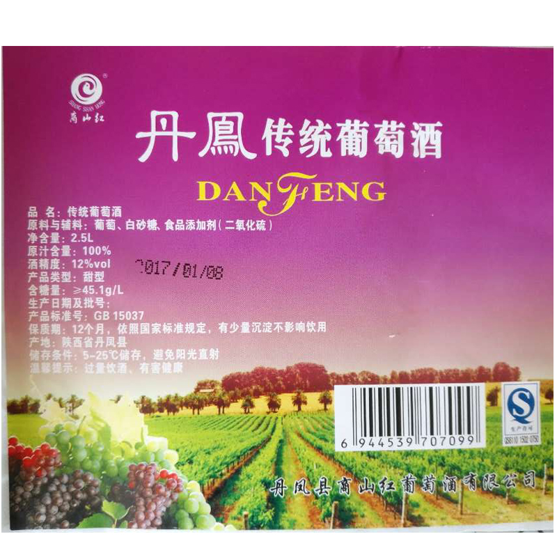 淘宝商山红丹凤传统红葡萄酒大桶普酿葡萄酒甜型红酒2.5升5斤装非干红