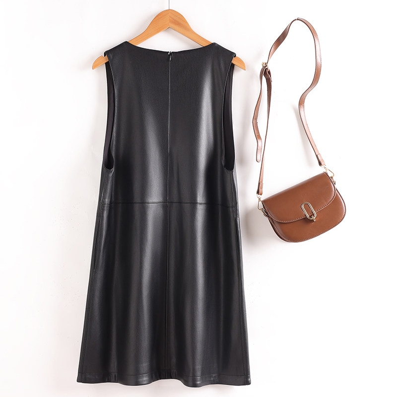 2025秋冬新款真皮马甲女装,采用优质头层牛皮,质感细腻,挺括有型。V领设计巧妙修饰颈部线条,视觉显瘦,搭配宽松版型,包容性强,轻松藏肉。坎肩式剪裁融合背心与连衣裙元素,中长款设计拉长身形比例,兼具优雅与随性。无论是内搭高领毛衣,还是外披大衣,都能轻松打造层次穿搭,百搭实穿。经典黑、焦糖、深棕等多色可选,适配通勤、休闲等多种场合。这款真皮马甲背心连衣裙,将时尚与舒适完美融合,是2025秋冬衣橱不可或缺的时尚单品。