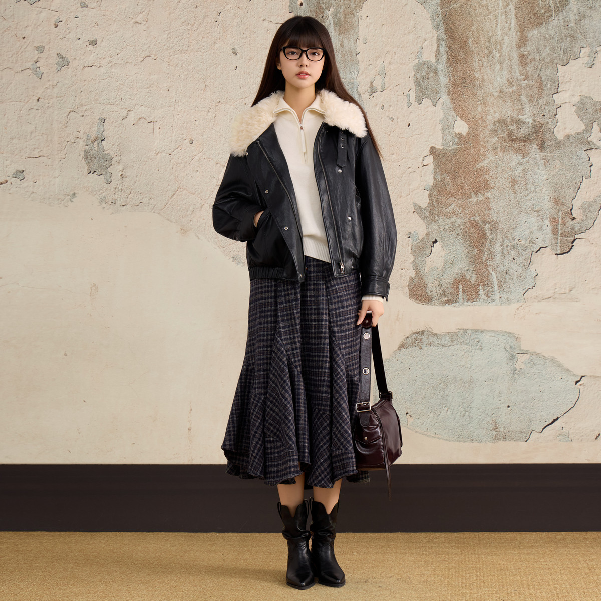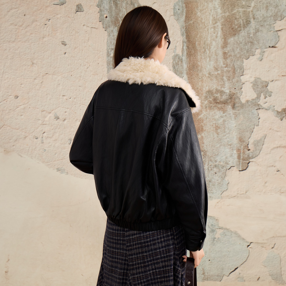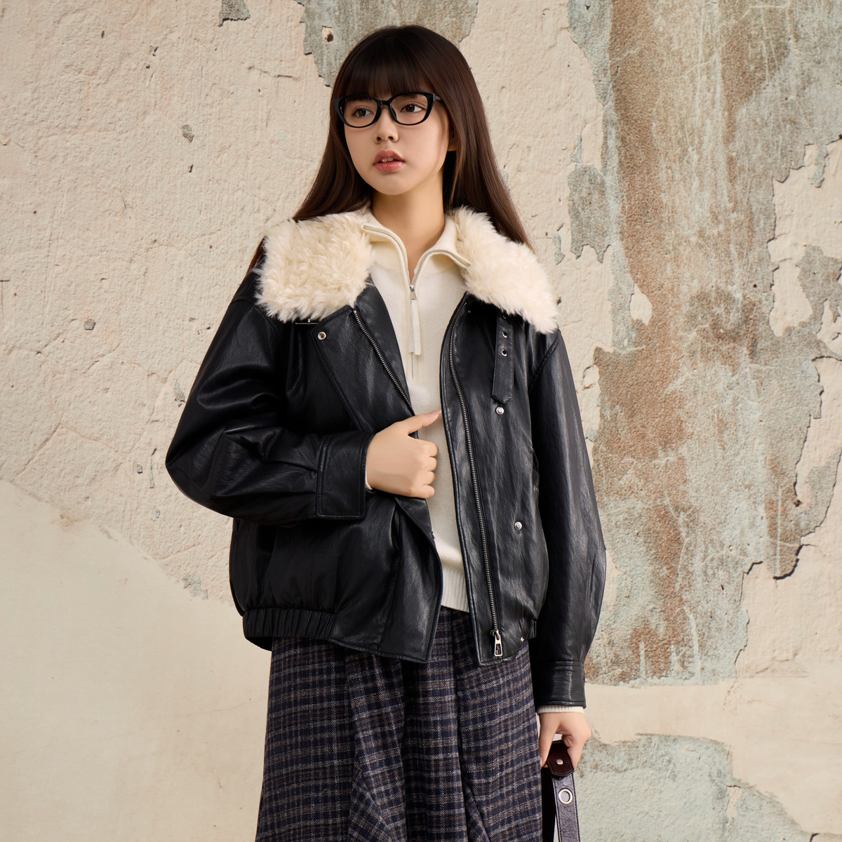 西町村屋2025冬季新款女装皮衣外套XHAD10568,以复古格调诠释现代时尚。精选优质仿皮材质,质感挺括,保暖耐穿,搭配蓬松仿兔毛领,增添冬日温暖与优雅气质。修身剪裁凸显女性曲线,门襟金属拉链与复古纽扣细节精致,彰显匠心工艺。多口袋设计兼顾实用与造型感,轻松打造街拍潮搭。无论是搭配针织衫还是连衣裙,都能演绎出率性又不失柔美的冬日风格。这款毛领皮衣,是追求个性与温度并存的女性的理想之选,让复古潮流在寒冬中焕发新意。