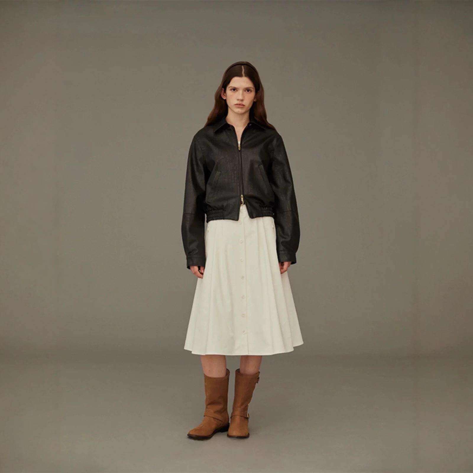 【现货】GROVEEDGE韩国翻领短款夹克,融合韩系美学与高级复古风格,精选优质PU皮革打造,质感挺括且富有光泽。经典翻领设计搭配双拉链开合,兼具实用性与时尚感,短款剪裁凸显腰线,轻松拉长身形比例。细节处精致走线,袖口与下摆利落收边,彰显匠心工艺。百搭黑棕配色,轻松驾驭通勤、出街或约会场景,内搭针织衫或衬衫皆宜。无论是搭配高腰裤还是半身裙,都能展现都市女性的酷飒与优雅。现货发售,即拍即发,轻松穿出韩系高级感,是秋冬衣橱不可或缺的时尚单品。