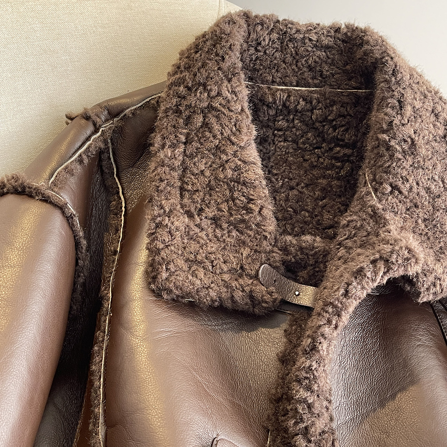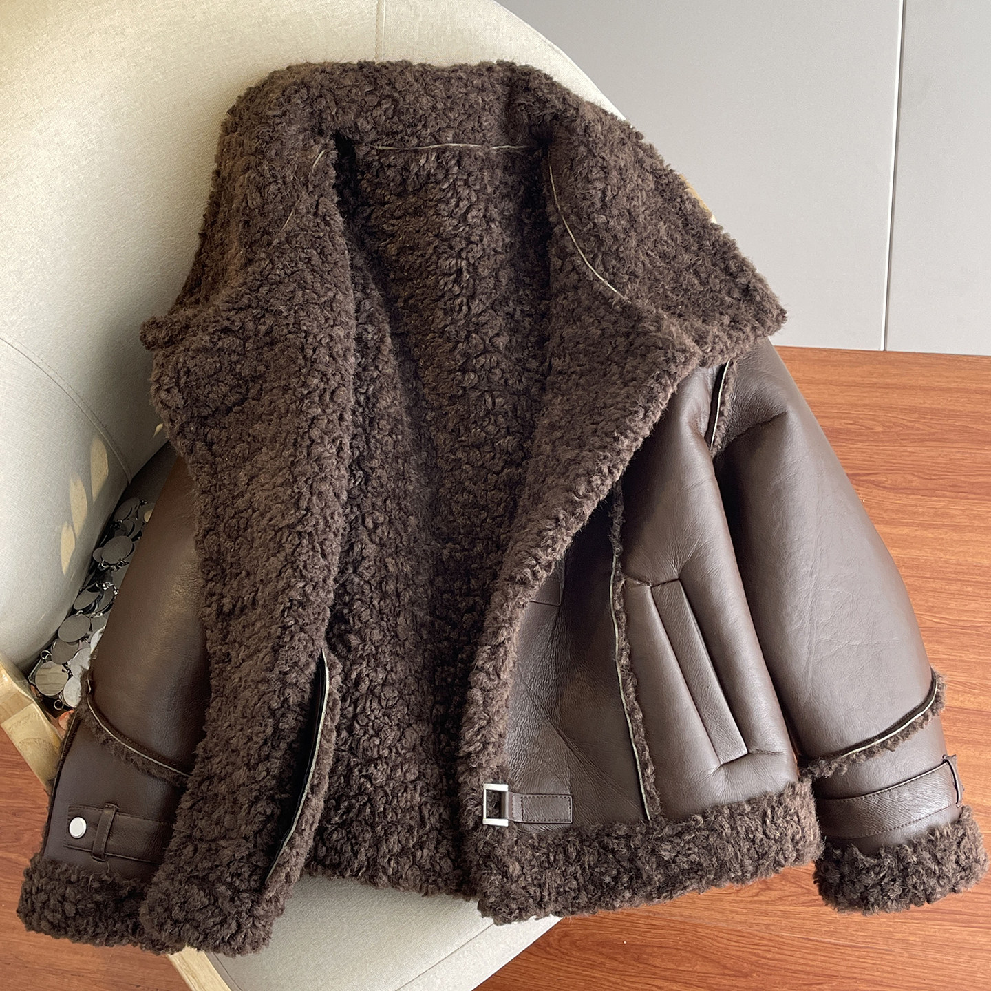 淘宝颗粒绒咖色复古羊羔毛皮衣外套女秋冬2025新款加厚加绒机车服夹克