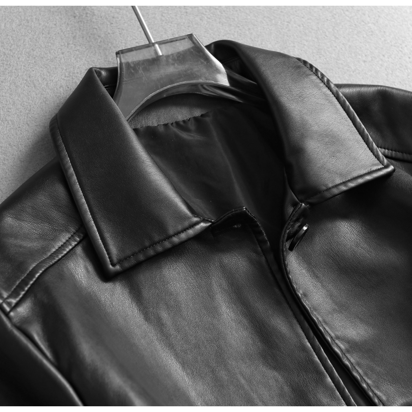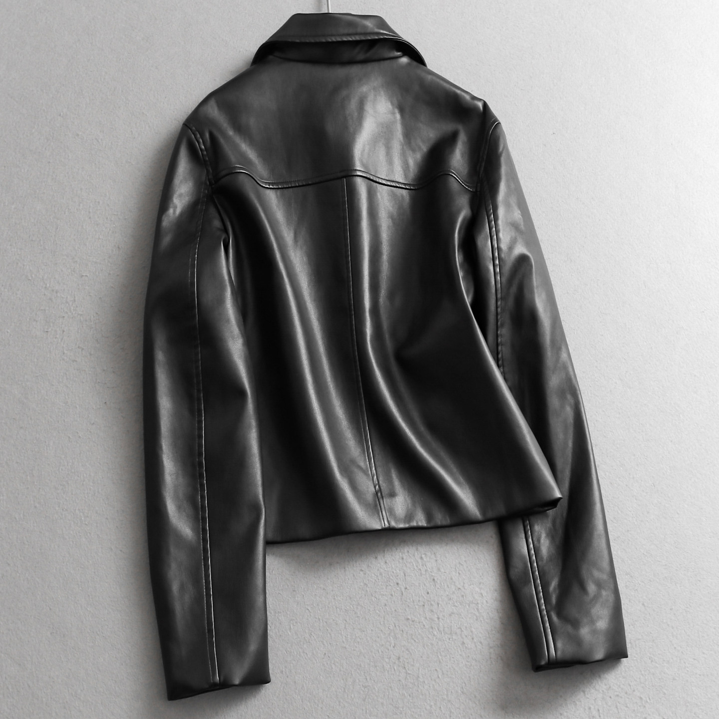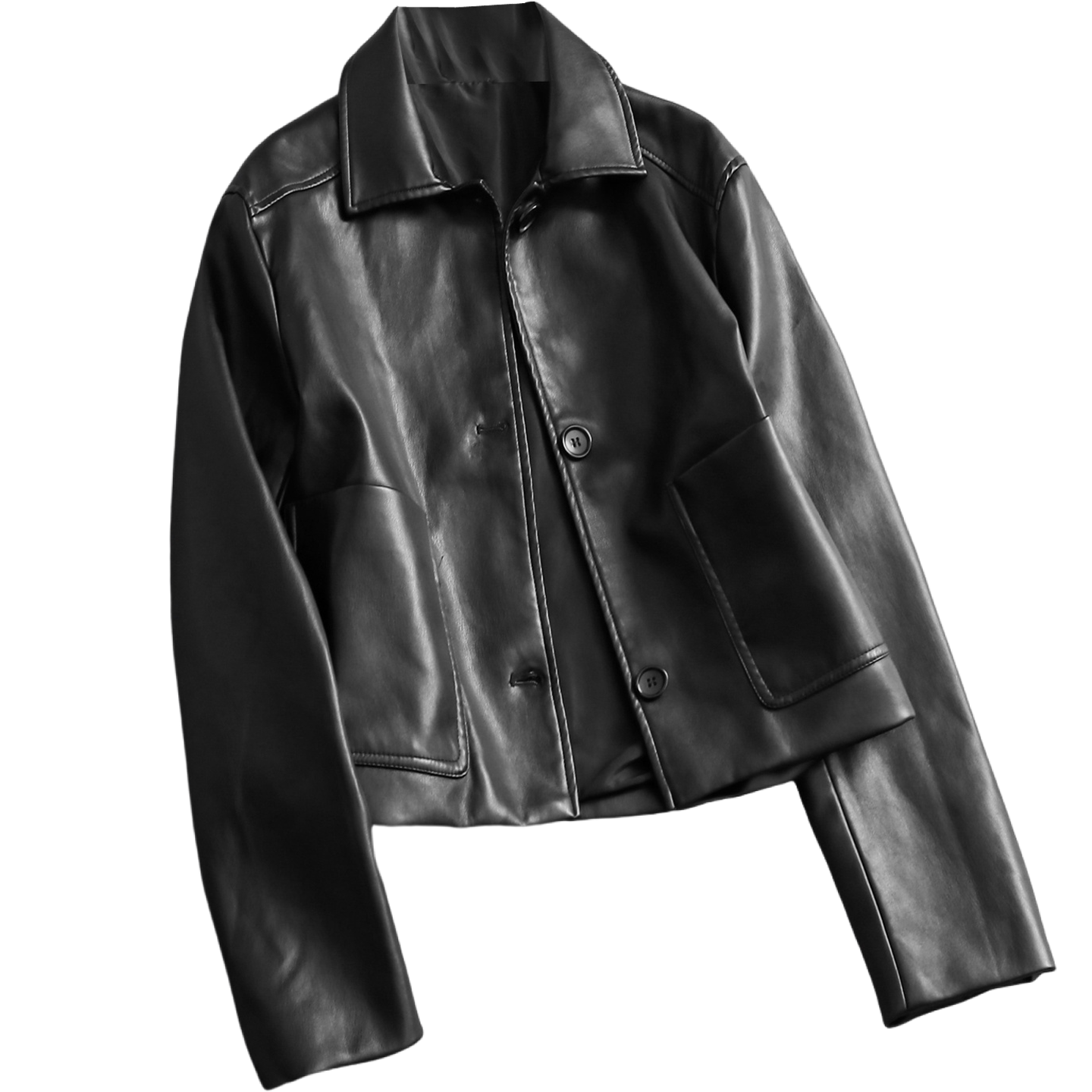 淘宝复古韩系翻领口袋单排扣夹克外套2025秋季新款简约长袖女皮衣V894