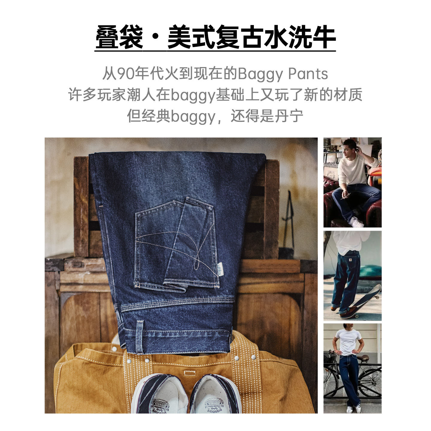 淘宝马登工装美式复古水洗弯刀牛仔裤丹宁阔腿垂感拖地休闲长裤子男秋