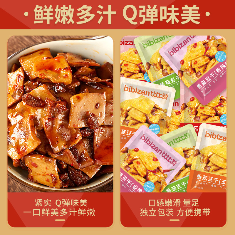 天猫比比赞香菇豆干豆腐干辣条小零食小吃休闲美食品小包装大礼包批发