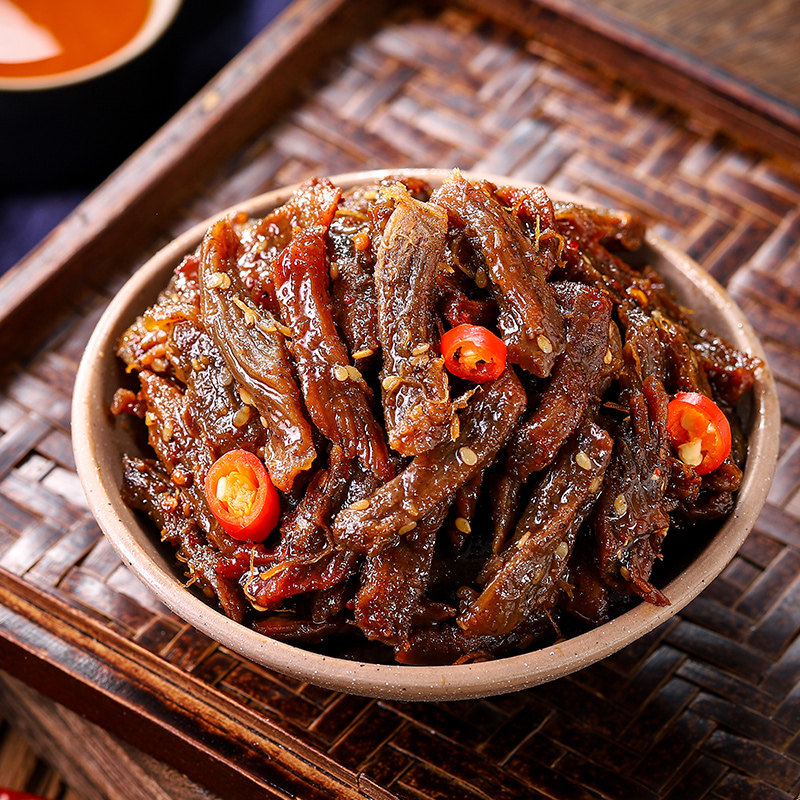 陈阿炳手撕肉干,精选优质鸭肉,经传统工艺真空风干,肉质紧实耐嚼,口感层次丰富。小包装设计,方便携带,开袋即食,是追剧、办公、旅行时的理想解馋零食。有麻辣与五香两种经典口味,麻辣鲜香刺激味蕾,五香醇厚回味悠长,满足不同喜好。不含防腐剂,健康无负担,每一口都保留鸭肉的原汁原味。陈阿炳坚持匠心制作,严控品质,让美味与健康兼得。无论是深夜小饿,还是朋友聚会分享,这款手撕肉干都能带来满满满足感,是零食控不可错过的地道风味。