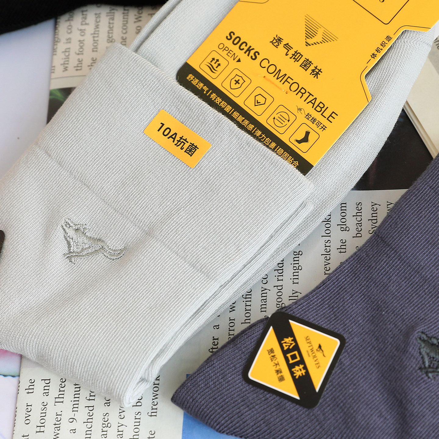 七匹狼男士新款袜子男款纯棉中筒袜吸汗透气7a抗菌防臭商务男袜子