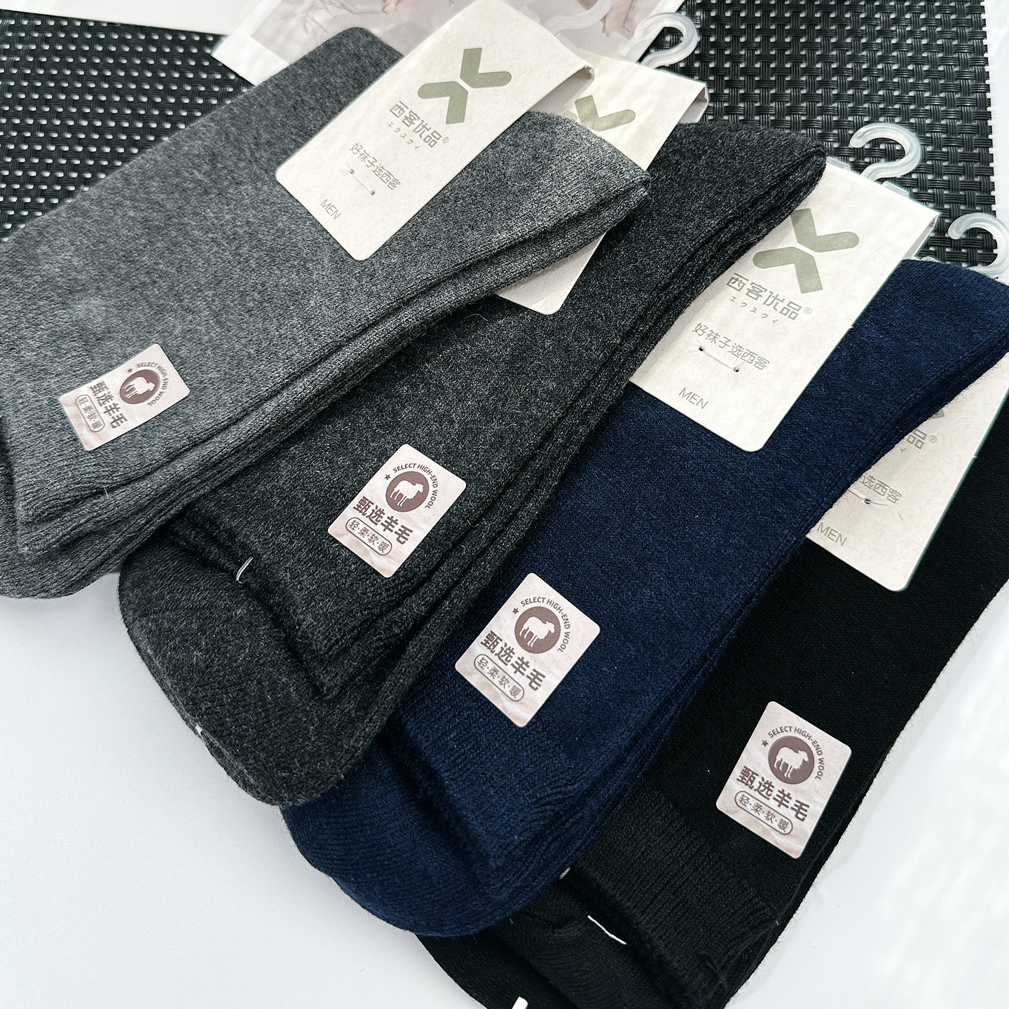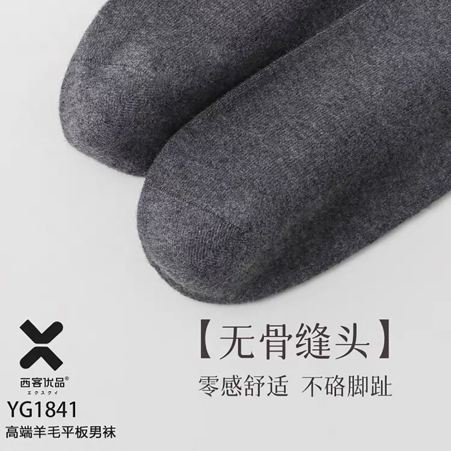 淘宝西客优品羊毛平板男袜秋冬保暖无骨柔软舒适中筒纯色商务成人1841