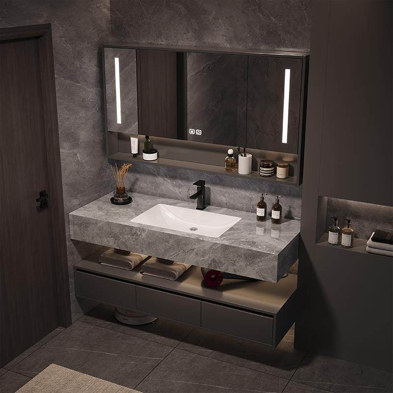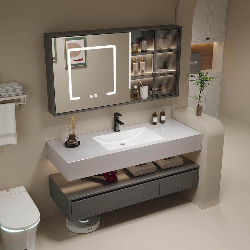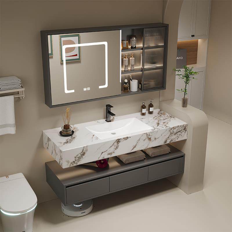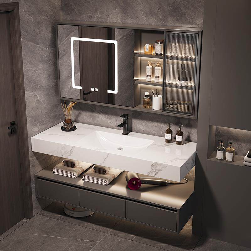 淘宝酒店风岩板陶瓷无缝一体盆智能浴室柜组合洗手洗脸化妆室洗漱台池