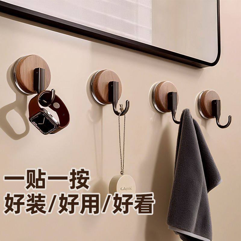 淘宝木纹吸盘挂钩卫生间浴室强力承重免打孔无痕吸盘式衣柜入户门挂钩