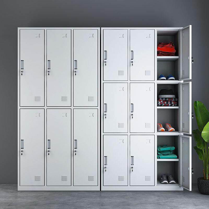 钢制更衣柜采用优质冷轧钢板制作,坚固耐用、防潮防锈,适用于健身房、浴室、工厂、学校等多种场所。4门与6门设计灵活,满足不同空间需求,每格独立带锁,保障私人物品安全。柜体表面经静电喷涂处理,光滑美观且易清洁。内部结构合理,可加装隔板或挂钩,提升收纳便利性。通风孔设计有效防止异味积聚,适合潮湿环境使用。安装简便,可单独使用或并排组合,节省空间。是员工储物、健身存包、浴室换衣的理想选择,兼具实用性与安全性,性价比极高。